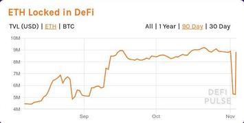 Очень показательный факт - приведённая выше новость от 7 октября отлично иллюстрируется слайд-шоу от .... 4 ноября. Да, это уже не первый сильный завал "капитализации" DeFi; за последние 2 месяца (сентябрь-октябрь) это уже как минимум третье или четвёртое крупное падение в DeFi-секторе.